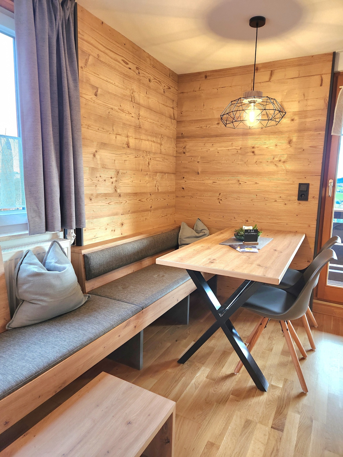Das Apartment befindet sich im 1. OG und ist ausgestattet mit 3 Räumen, darunter 2 Schlafzimmer mit insgesamt 2 Doppelbetten und einem Einzelbett sowie einem Kinderbett. Die Wohnung bietet modernen Komfort wie WLAN, TV, Waschmaschine, Wäschetrockner und ist allergikergeeignet. Die Küche ist voll ausgestattet mit Geschirrspüler, Herd, Backofen, Mikrowelle, Kühlschrank, Kaffeemaschine und weiteren Annehmlichkeiten. Das Badezimmer verfügt über eine Dusche und einen Haartrockner. Für Kinder gibt es ein kindgerechtes Umfeld mit Hochstuhl und Spielplatz. Im Außenbereich sind ein Garten, Gartenmöbel, ein Grill, ein Balkon und ein Fahrradunterstellplatz vorhanden. Parkmöglichkeiten sind ebenso vorhanden wie eine Sauna zur Entspannung. Haustiere sind nicht erlaubt und es handelt sich um eine Nichtraucherunterkunft.